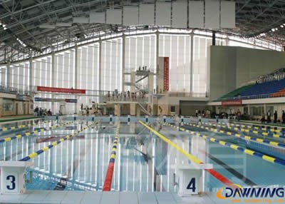 游泳跳水的池水消 毒系統(tǒng)采用了國際標準的臭氧消 毒處理系統(tǒng),水處理系統(tǒng)堪比水立方,保證池水清潔衛(wèi)生,節(jié)省人力百分之90節(jié)省補水百分之80節(jié)電百分之80 節(jié)省熱能百分之80,該設備節(jié)約能耗,運行性能,環(huán)保指標均達到國際水平。泳池的水溫為26℃±1℃。跳水池采用國際制波系統(tǒng),減少運動員身體觸水時的壓力,避免意外受傷。