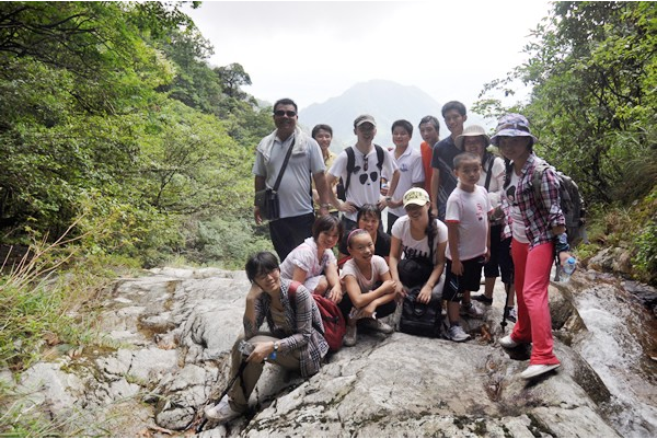 經(jīng)過7、8個(gè)多鐘頭的不斷上坡下坡,大汗淋漓、筋疲力盡的時(shí)候后我們終于在到達(dá)了風(fēng)景開發(fā)區(qū)的階梯,因?yàn)檫€要回長(zhǎng)沙,周一要上班的原因。我們放棄了爬上金頂,一個(gè)個(gè)都腿腳如灌鉛了一樣,下山腳痛的厲害。相比如之前的爬坡下坡,這樣一 **一 **的臺(tái)階,似乎上下的更為辛苦。